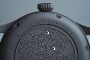 One of the standout touches is how explicitly ProLab celebrates its place of origin without lapsing into nostalgia for nostalgia’s sake. Both watches carry the inscription Made in Pforzheim on the dial and caseback, and two discreet gold dots on the caseback mark the historic home of the brands within the city, turning geography into a small but meaningful design signature.