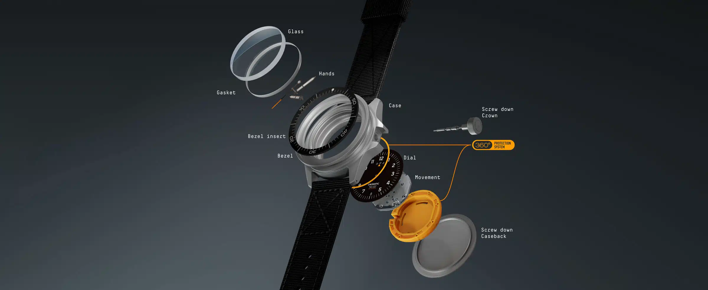 Speaking of protection, the UT1 incorporates UNIMATIC’s in house designed 360 degree protection system, realized in a special thermoplastic polyurethane shell that surrounds the movement and dial (which truly is a first for me, haven’t seen this with any other brands). This TPU structure allows the watch to meet MIL STD 810H shock resistance standards, meaning it is engineered to handle serious impacts, vibrations, and environmental stress far beyond what a typical daily wearer will ever see. It is the kind of structural engineering usually reserved for far more expensive instruments, and it gives the UT1 a quietly impressive technical edge in the crowded microbrand diver space.​
